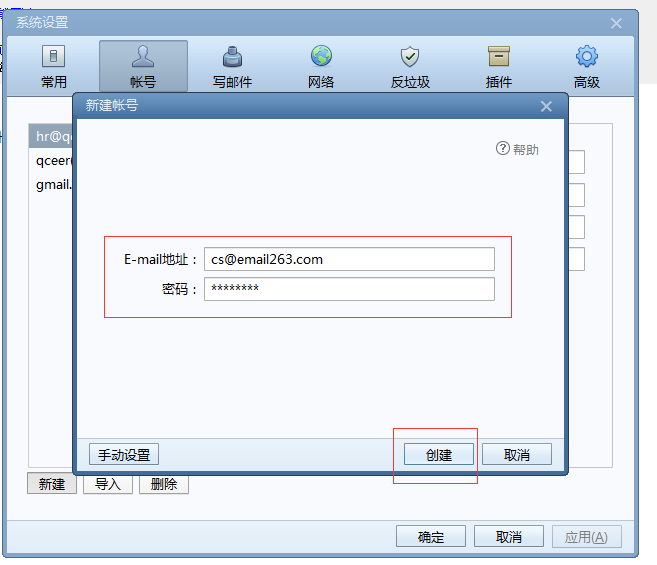 點擊創建即可(提示:如果報錯有以下幾種可能,賬號或密碼錯誤,imap或pop服務器配置地址錯誤)