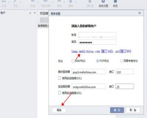 IMAP 協議—接收服務器名稱:imap.mxhichina.com,端口號143,ssl加密端口993。