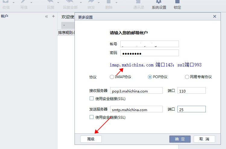 POP 協(xié)議,接收服務器名稱:pop3.mxhichina.com,或者pop3.您的郵箱域名,端口號110,ssl加密端口995。