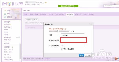 在這里填上企業郵箱的pop3收件地址,點擊驗證,驗證通過后就完成了。以后就可以在QQ郵箱中直接收取企業郵箱中的郵件。