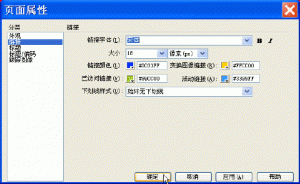 設(shè)置鏈接,“鏈接”選項內(nèi)是一些與頁面的鏈接效果有關(guān)的設(shè)置。“鏈接顏色”定義超鏈接文本默認狀態(tài)下的字體顏色,“變換圖像鏈接”定義鼠標放在鏈接上時文本的顏色,“已訪問鏈接”定義訪問過的鏈接的顏色,“活動鏈接”定義活動鏈接的顏色。“下劃線樣式”可以定義鏈接的下劃線樣式。