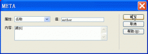 插入META,META標記用于記錄當前網(wǎng)頁的相關(guān)信息,如編碼,作者,版權(quán)等,也可以用來給服務(wù)器提供信息。單擊上圖所示的“META”項,彈出“META”對話框,在“屬性”欄選擇“名稱”屬性,在“值”文本框中輸入相應(yīng)的值,可以定義相應(yīng)的信息。