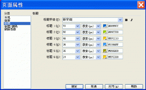 設(shè)置標題,“標題”用來設(shè)置標題字體的一些屬性。如下圖所示,在左側(cè)“分類”列表中選擇“標題”,這里的標題指的并不是頁面的標題內(nèi)容,而是可以應(yīng)用在具體文章中各級不同標題上的一種標題字體樣式。我們可以定義“標題字體”及6種預(yù)定義的標題字體樣式,包括粗體、斜體、大小和顏色。按自己的喜歡的風(fēng)格設(shè)置吧。