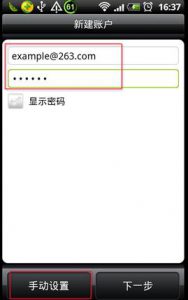 2.首先輸入您的郵箱地址和密碼,然后點擊“手動設置”