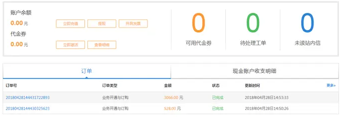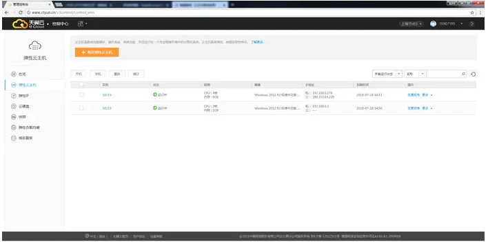 2、查看一下你已經購買了的服務,對天翼云來說,點擊網站眉部的用戶中心即可看到: