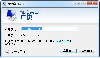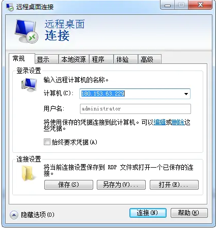 9、輸入步驟5中我說到的那個公有IP地址,點擊“顯示選項”,用戶名輸入“administrator”,用戶名是在步驟6中查到的: