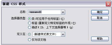 注意:類名稱必須以句點開頭,并且可以包含任何字母和數字組合(例如,.mycss)。如果您沒有輸入開頭的句點,DW MX 2004將自動為您輸入。