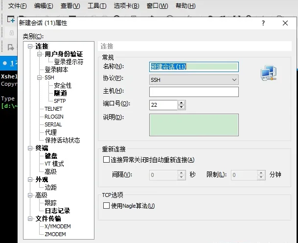 1.安裝完Xshell后,會彈出會話窗口,或者在主界面點擊【新建】按鈕打開。