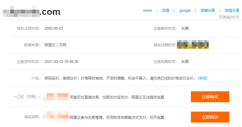 ▪ 域名回購方式,阿里云加收買家15%的手續(xù)費,可開阿里云全額發(fā)票。