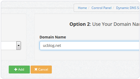 4、如果你有自己的域名,則可以直接綁定域名到DynDNS上。