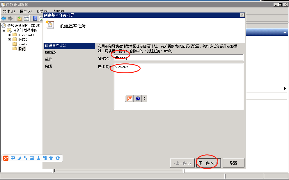 3 選中左邊的”備份”,右邊點”創建基本任務”