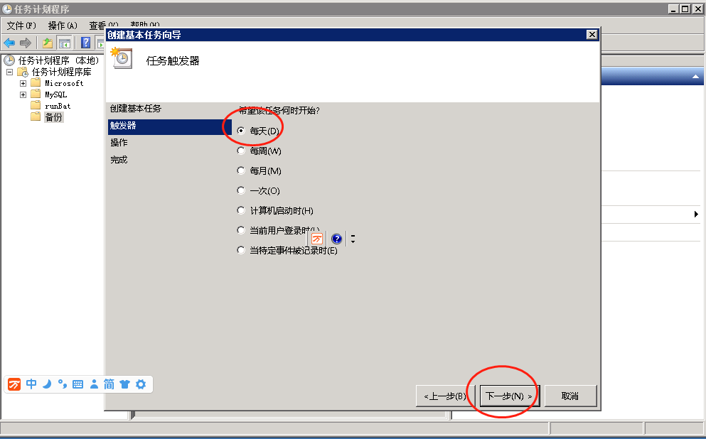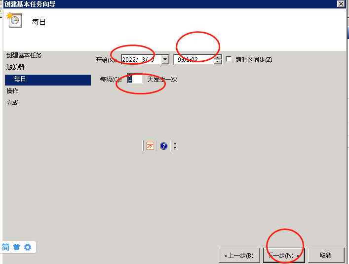 4.3選擇執行的時間、間隔的天數后點”下一步”