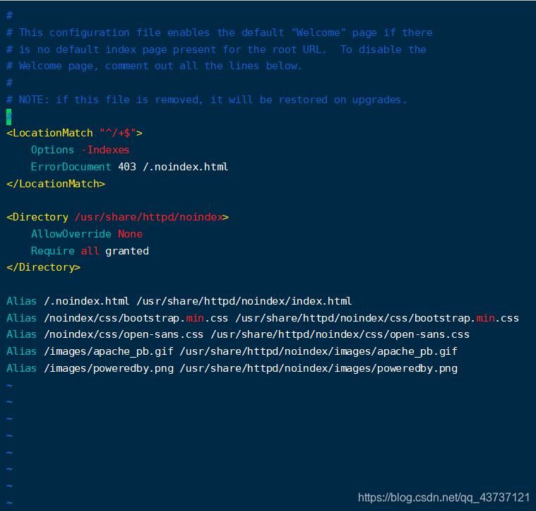vi /etc/httpd/conf.d/welcome.conf