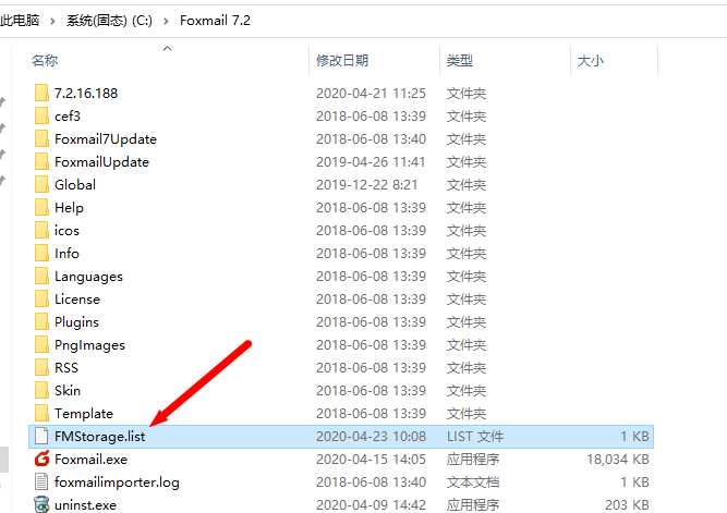 3、 在C:\Program Files\Foxmail 7.2目錄下找到一個名為FMStorage.list的文件