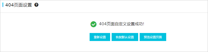 404錯誤頁面設置成功,如下圖所示。您可以根據需要進行重新設置、恢復默認設置以及預覽設置頁面操作。